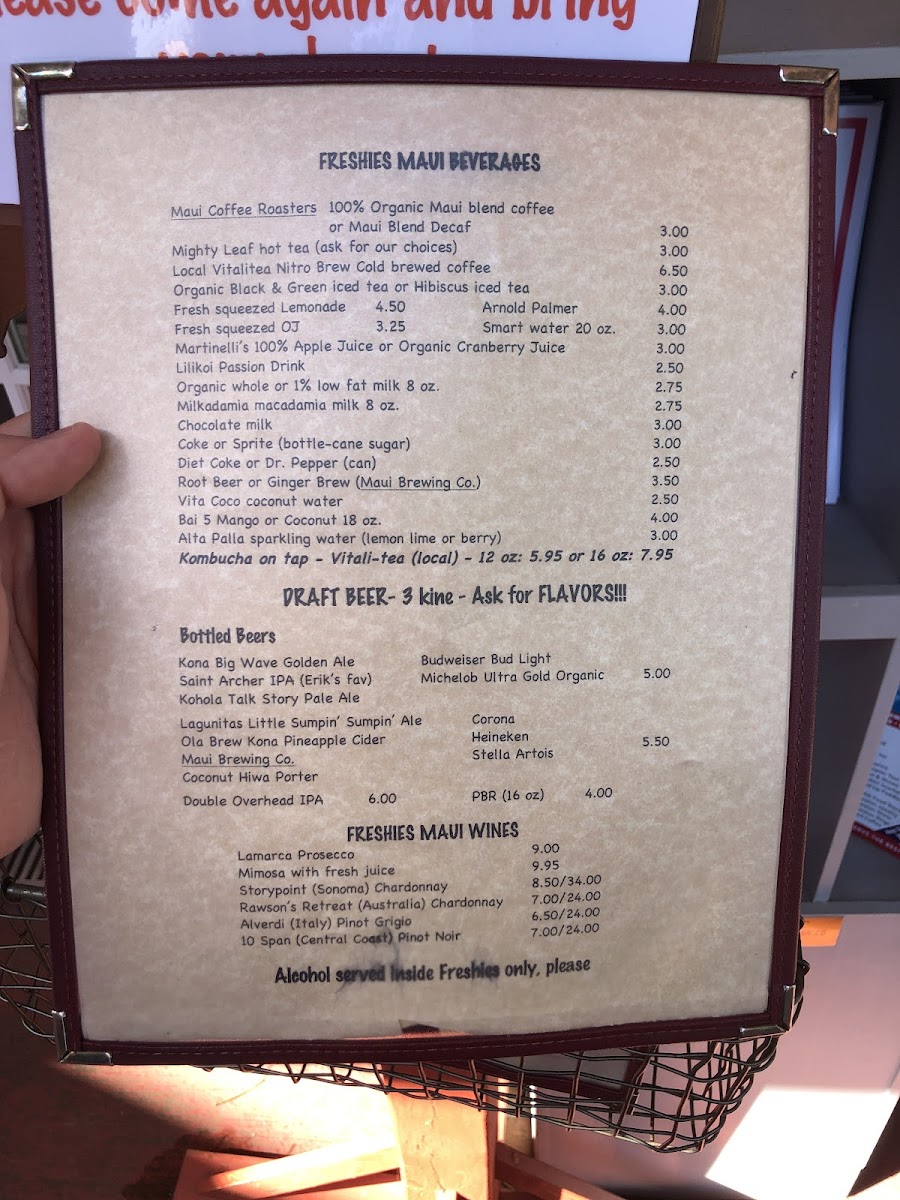 If you crave something heartier, dive into the Chicken Burrito Sandwich or the famously satisfying Grilled Fish Taco, each beautifully garnished and brimming with flavor. The inviting atmosphere, a blend of cozy country decor and outdoor charm, enhances your dining experience—perfect for a relaxing meal. With friendly service and reasonable prices, Freshies Maui is a must-visit for anyone exploring the culinary treasures of Hawaii.